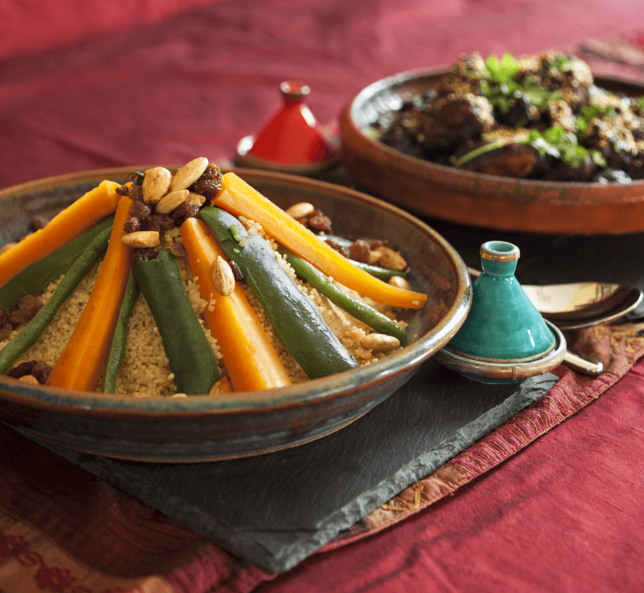 Chacun des plats de notre restaurant mêle tradition et créativité à partir des ingrédients typiques de la cuisine marocaine. Fraîcheur et qualité se retrouvent avec passion dans chaque assiette, pour une explosion de saveurs. Dégustez nos tajines mijotés avec des épices orientales, nos couscous parfumés ou encore nos pastillas croustillantes au goût inoubliable !